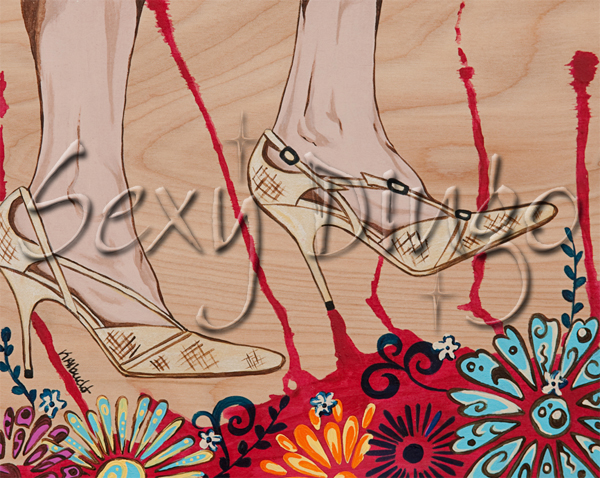 Furious Rose How many pairs of shoe do I have? It would be a crime to share that type of information. But I do love to share my favorite pairs with anyone who is interested. The pair in question - Gold leather faux snake skin, Carlos Santana. Features - Sexy heel, sexy toes, sexy all over the place. Medium - Arylic on Wood Original Painting |