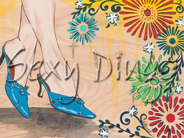 Good Gossip We have all done it. Gotten into our most comfortable sitting position before we spill the beans on the secret fling going on in the cubicle next door. This would be my gossip position as well as my gossip shoes. They know every secret I have ever told. And even some that I havn't told. Wink, Wink. Medium - Arylic on Wood Original Painting |