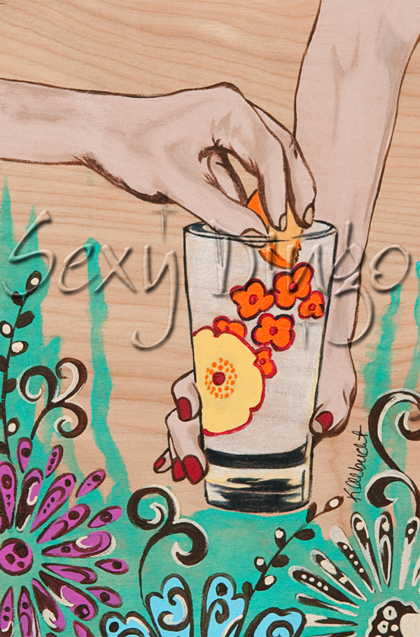 This One's On Me "Or is it on you, ha ha ha." Yes, it's true. This painting reminds of all the lame flirting and fun you have with someone when you first meet over a chilled drink. Next time, hope you don't say something awesome like "Hey, I like the way you squeeze that lime...er,..." Medium - Arylic on Wood Original Painting |